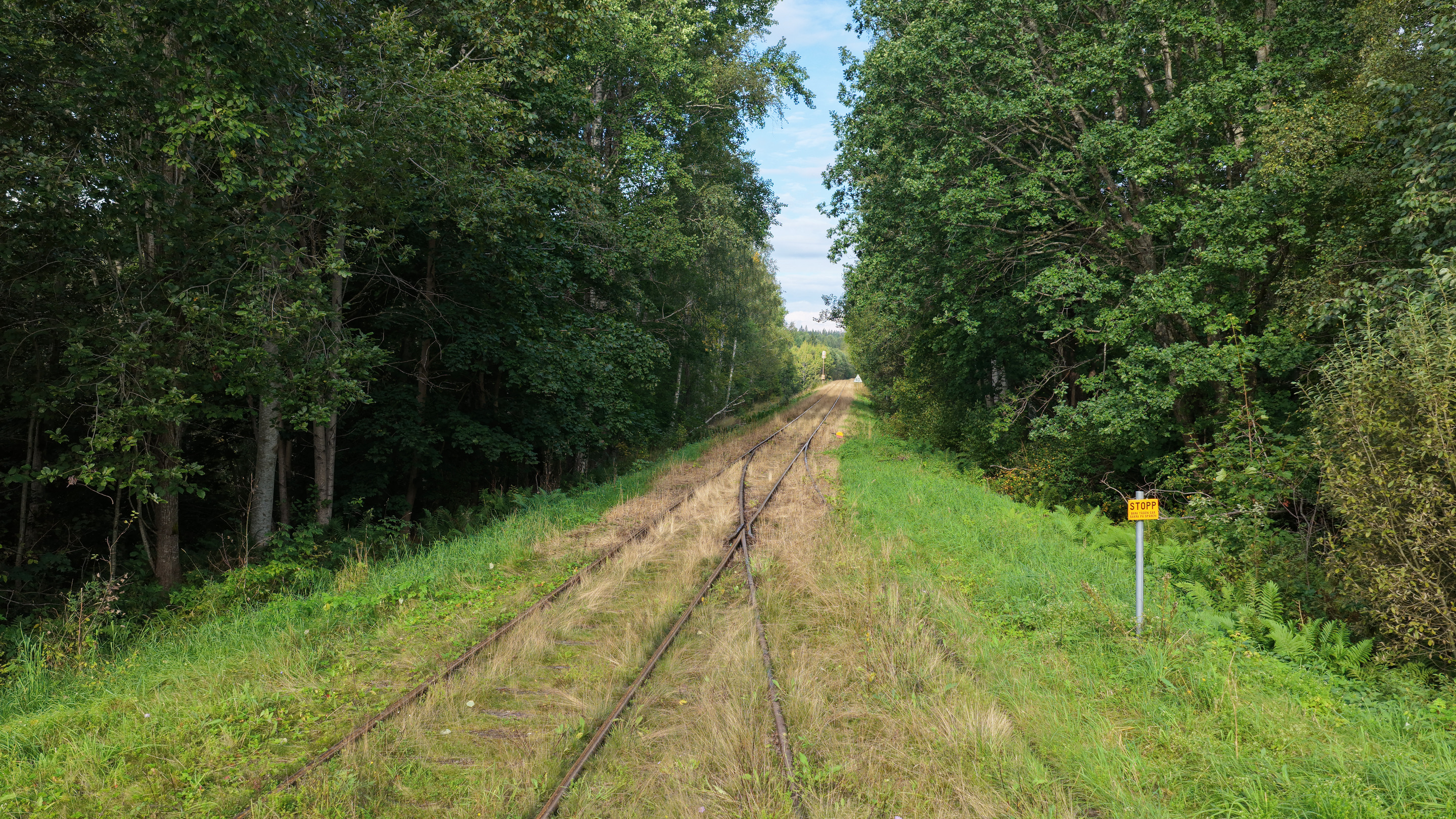 Med lågflygande drönarbilder får man en känsla för platsens historia – där tiden stått stilla i väntkuren och längs spåren som ännu lever genom veterantågen.